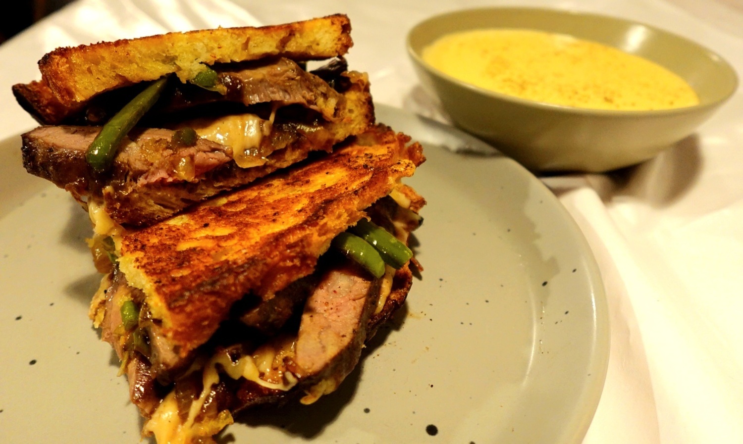 The recipe combines, steak onions, peppers and black garlic with oozy cheese sauce and tastes divine. The nacho cheese element usually leaves a bit over and I like to throw this on some crunchy French fries with crispy bacon bits to make loaded fries.